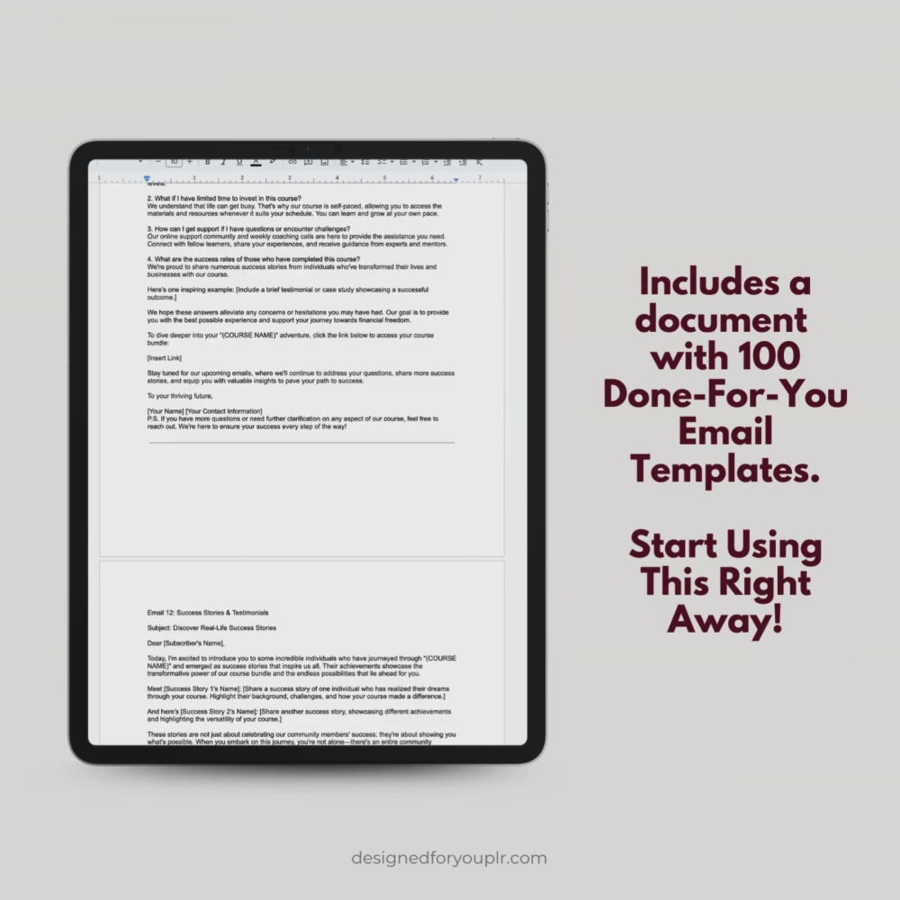 Our email templates offer a complete roadmap for mastering a critical aspect of your business. Envision the relief and excitement as your business runs smoothly on autopilot, guided step-by-step by these templates. They’re specifically tailored for marketing digital courses and products, ensuring your messages hit the mark every time.
