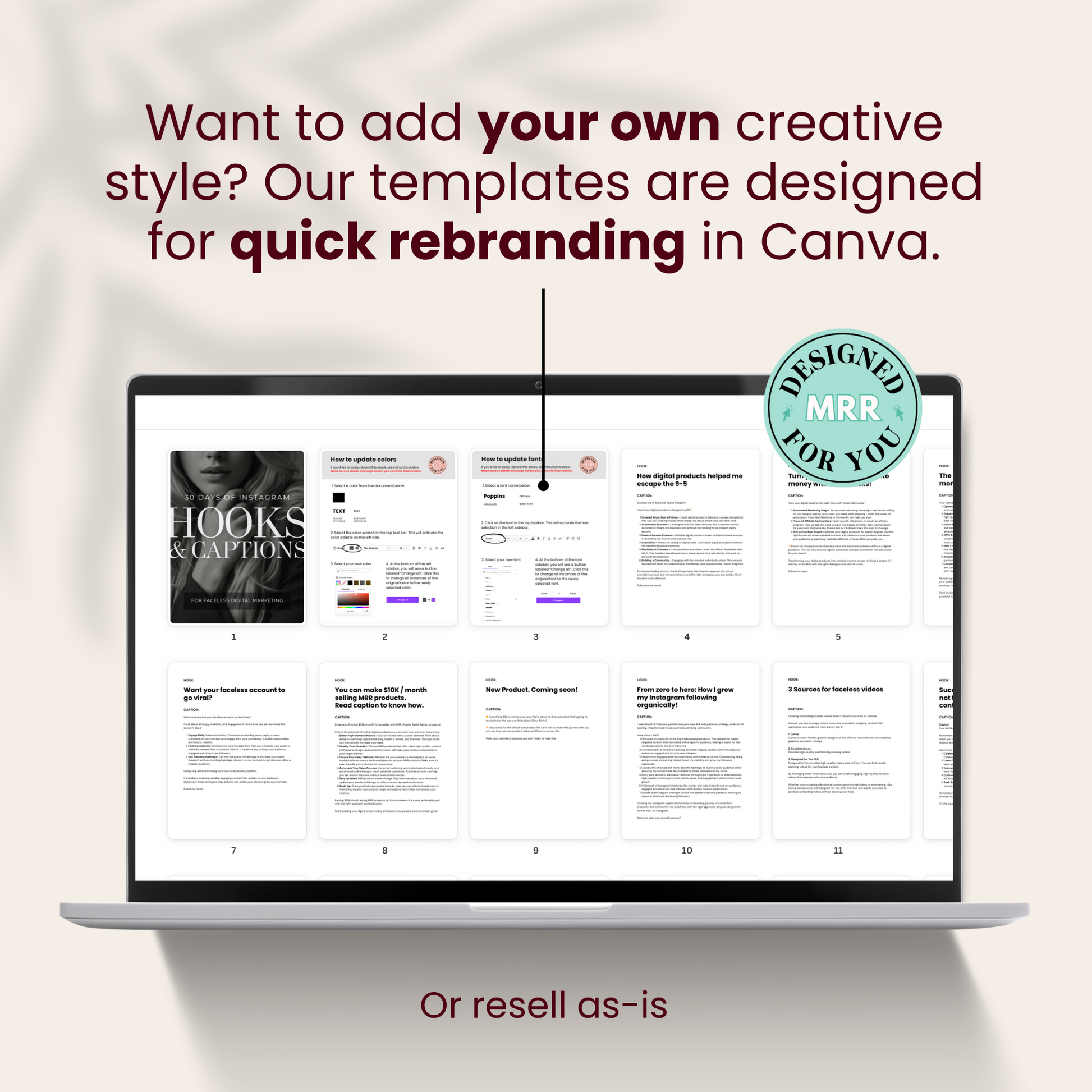 When you purchase our MRR products, you can transfer the resell rights to your customers when you sell to them. This enables your customers to sell the editable Canva file as an MRR product.