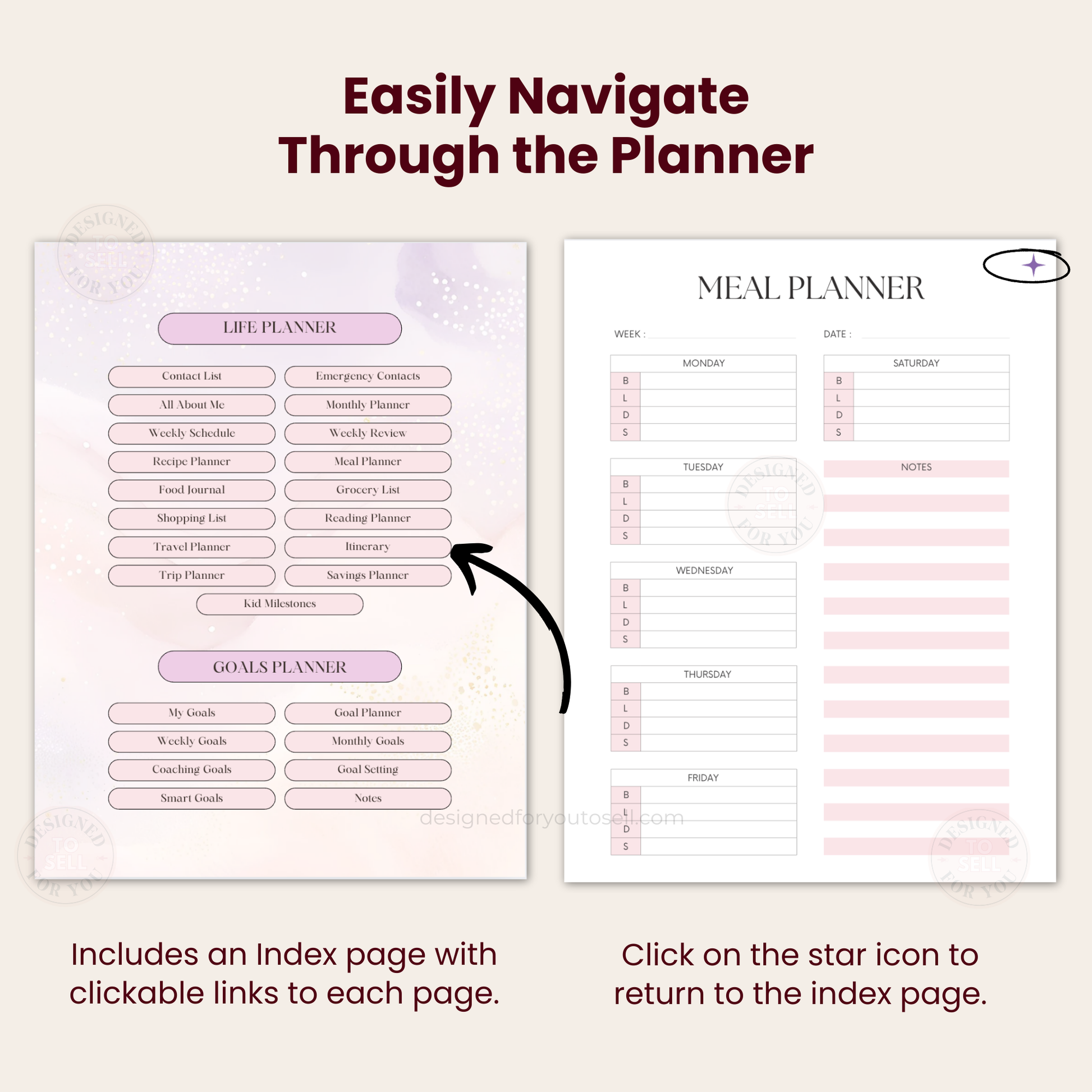 • Fully Hyperlinked in Canva: Navigate effortlessly between sections with fully hyperlinked pages, enhancing usability and interaction within Canva.