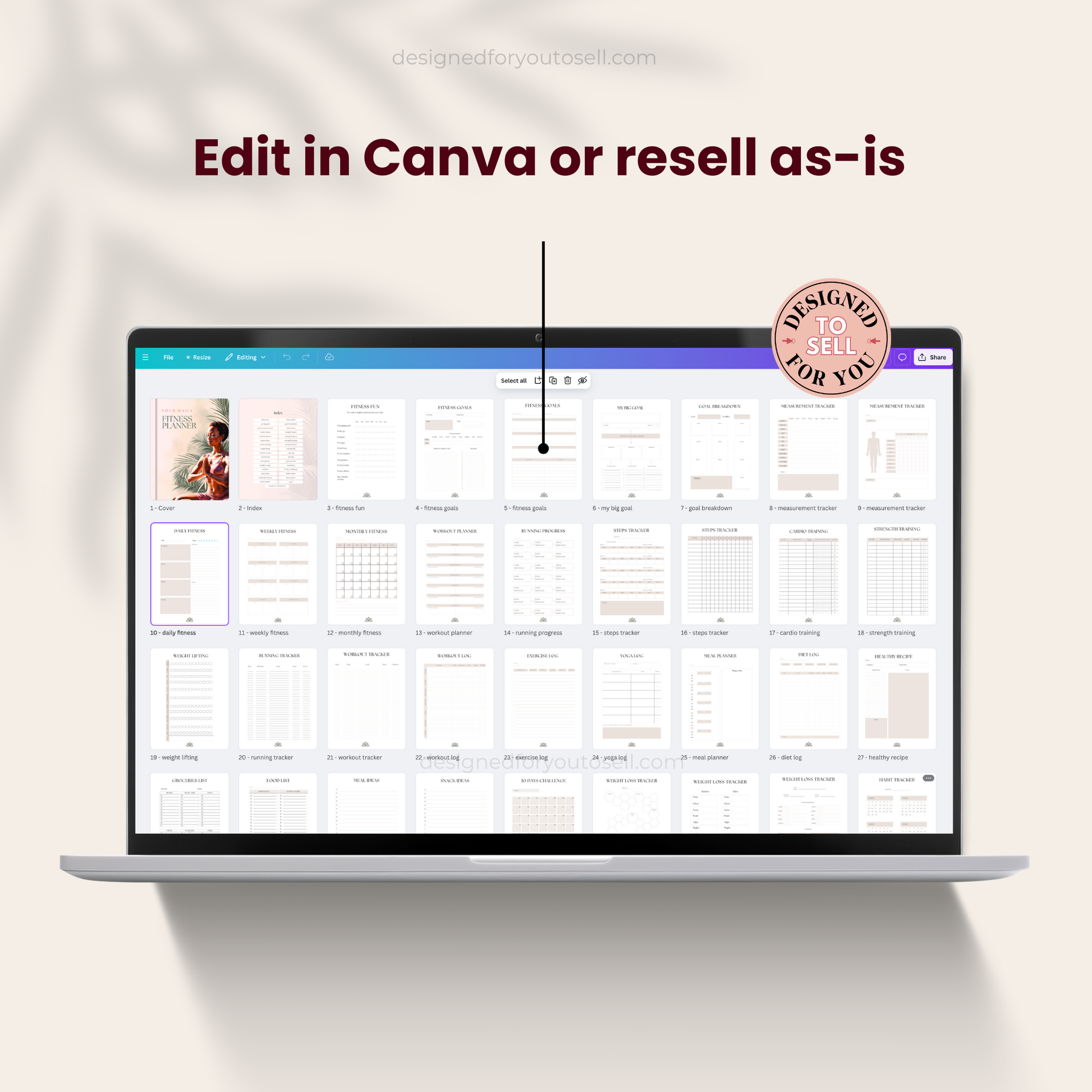 • 1 PDF with links to the editable Canva file which you can resell (can be used with Free and Pro Canva accounts).