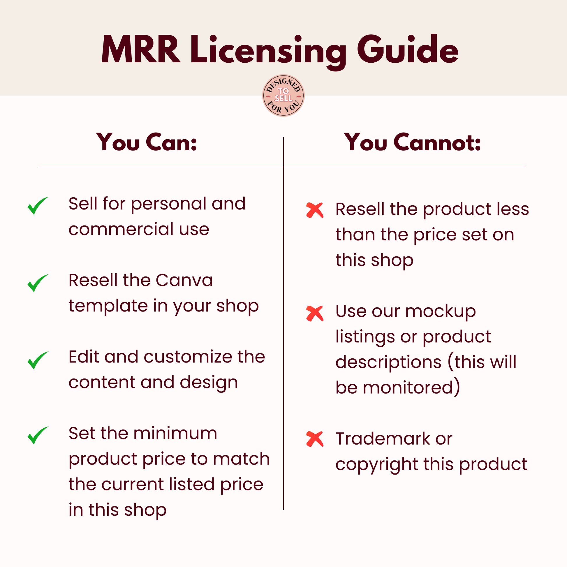 With our "Designed For You" PLR products, you can sell the Canva template to your customers, but it's limited to their personal use – they can't resell it.