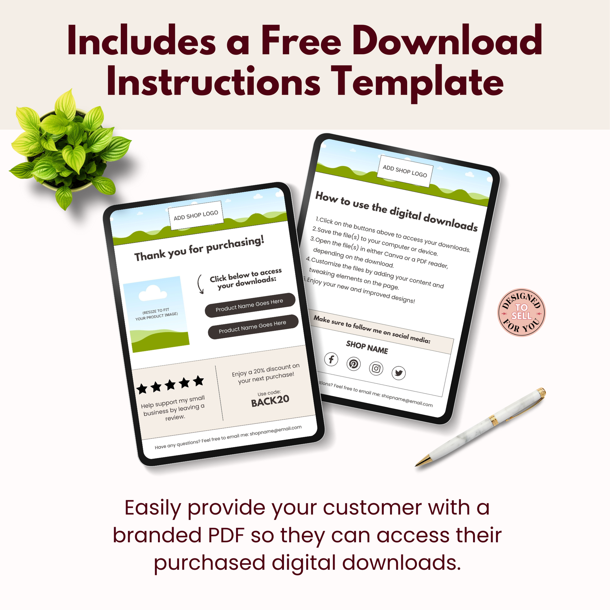 We also offer a free delivery template with each purchase. Personalize this FREE Canva template, add your template links, and then save it as a PDF. Upload this to PDF to your shop so when your customers purchase your digital product, they can download this PDF and easily access their new files.