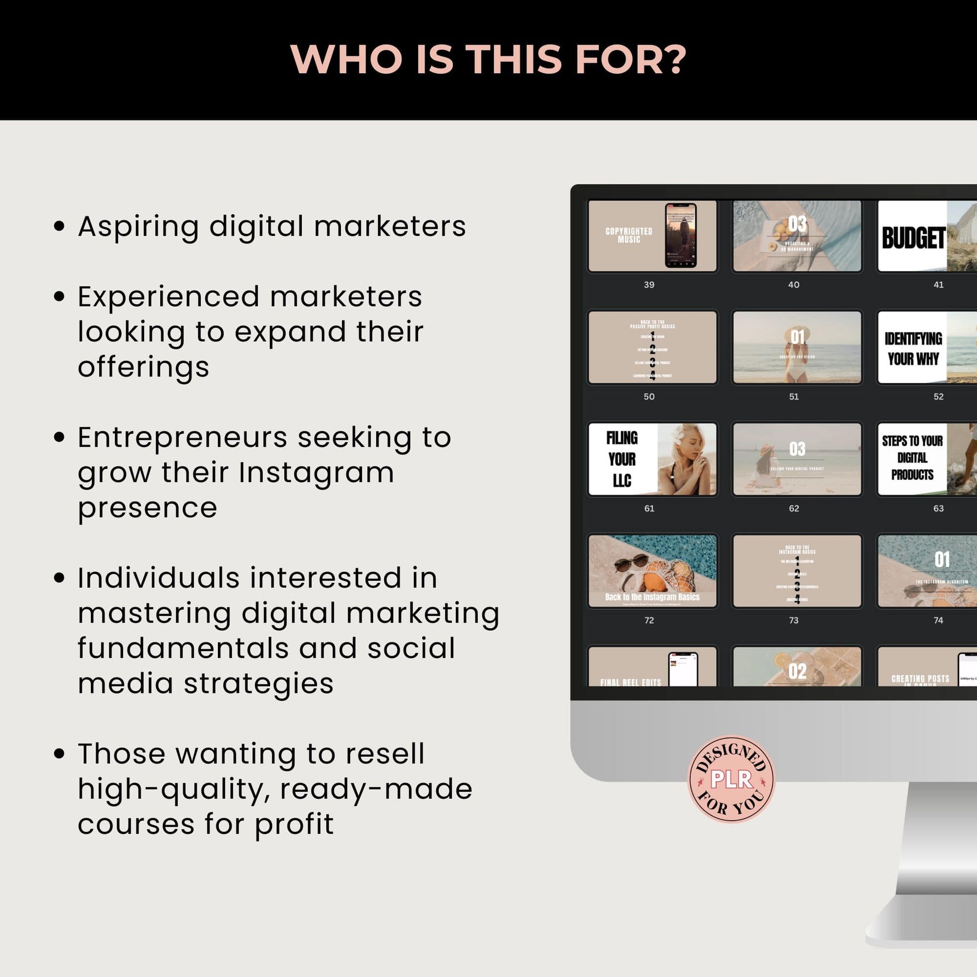 Also known as Ground Zero Digital Marketing Course, learn effective posting strategies, engagement techniques, and how to optimize your presence on Instagram with this 3-hour comprehensive audio/video course. With Master Resell Rights and Private Label Rights, you can resell this course as is or rebranded for 100% profit. Fully editable on Canva, this course offers practical, step-by-step guidance to boost your growth and engagement.